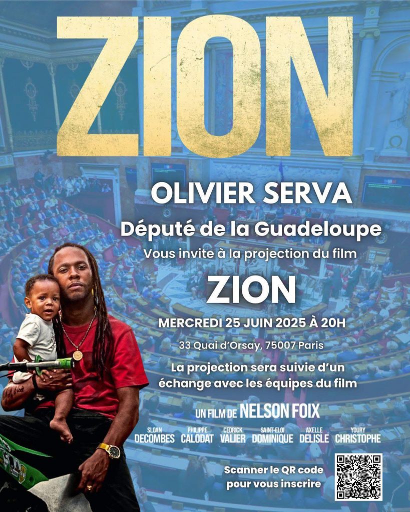 Le 25 juin, Olivier SERVA, député de Guadeloupe, a co-organisé à l’Assemblée nationale la projection du film Zion de Nelson FOIX, un thriller tourné en Guadeloupe. L’événement a permis de valoriser les talents ultramarins et de créer un espace d’échange entre acteurs culturels et décideurs publics.