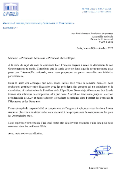 - Courrier du groupe LIOT aux présidents de groupe parlementaire