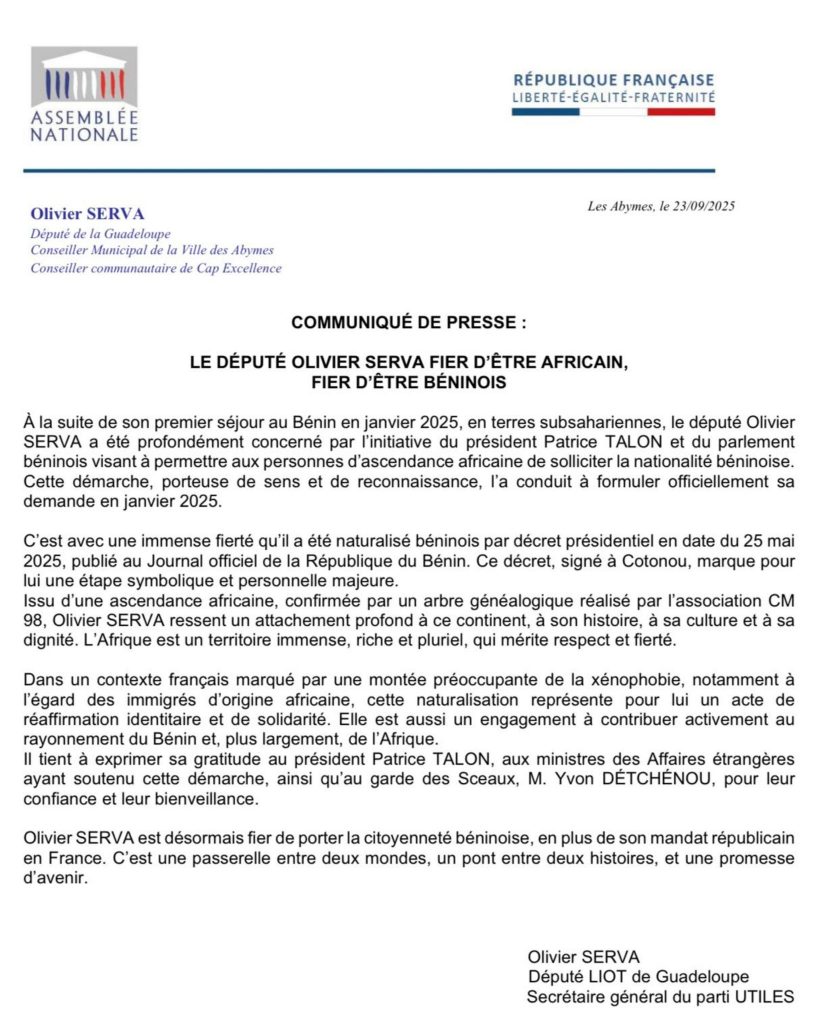 - « Fier d’être Africain » : Olivier SERVA devient binational avec la citoyenneté béninoise
